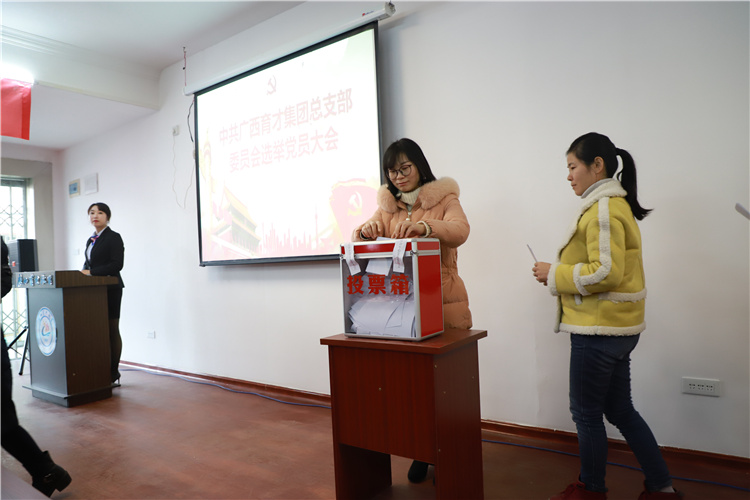 大會(huì)一致表決通過了《中共廣西育才教育集團(tuán)總支部委員會(huì)黨員大會(huì)選舉辦法(草案)》、監(jiān)票人、計(jì)票人名單。會(huì)上,主持人宣讀了箭盤山街道黨工委《關(guān)于中共廣西育才教育集團(tuán)總支部委員會(huì)委員候選人預(yù)備人選的批復(fù)》。大會(huì)投票選舉產(chǎn)生了中共廣西育才教育集團(tuán)總支部委員。第一屆中共廣西育才教育集團(tuán)總支部委員會(huì)會(huì)議同日召開,會(huì)議選舉出中共廣西育才教育集團(tuán)總支部委員會(huì)書記和副書記,會(huì)議還對其他委員進(jìn)行了具體分工,共設(shè)組織委員、宣傳委員、紀(jì)檢委員各1名。蔣華同志當(dāng)選為集團(tuán)黨總支書記,王志男選為集團(tuán)黨總支副書記,李彩梅任紀(jì)檢委員,王麗任宣傳委員,李麗瓊?cè)谓M織委員。