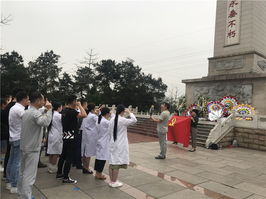 參加活動(dòng)的全體黨員在莊嚴(yán)肅穆的烈士紀(jì)念碑前,懷著對(duì)革命先烈無(wú)限敬仰與緬懷之情瞻仰了革命烈士紀(jì)念碑,向革命先烈默哀致敬,以表達(dá)對(duì)先烈的緬懷之情。在革命烈士紀(jì)念碑前,全體黨員一起重溫了入黨誓詞,向紀(jì)念碑敬獻(xiàn)了鮮花。