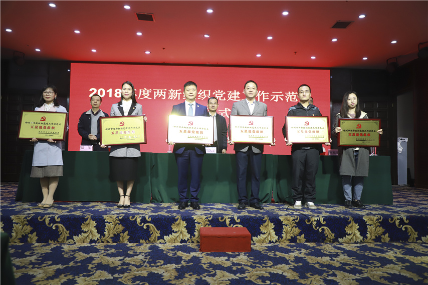 ▲集團(tuán)聯(lián)合黨委組織委員李麗瓊(左一)領(lǐng)取牌匾