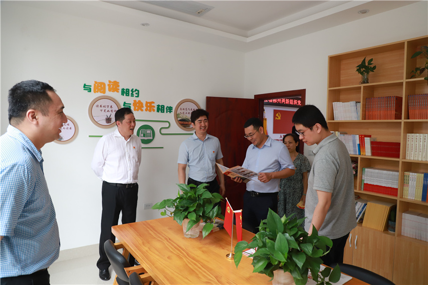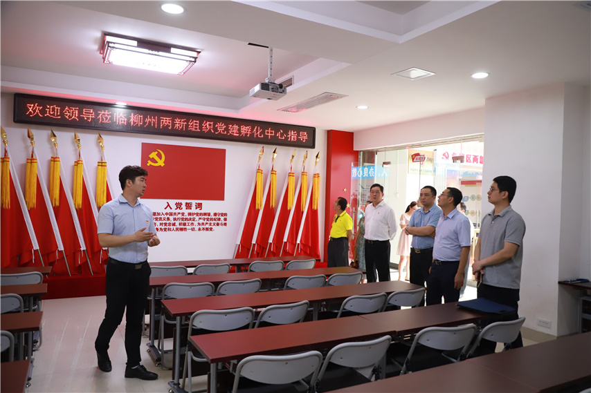 調(diào)研組第二站實(shí)地查看了柳州兩新組織黨建孵化中心暨魚峰區(qū)兩新組織黨建孵化站的研習(xí)室、培訓(xùn)室、圖書室、談心室、實(shí)操室、黨史長廊和活動園地;觀摩了支部黨員大會接收預(yù)備黨員的情景模擬。調(diào)研組對孵化站“入殼孵化”實(shí)現(xiàn)“三化”的做法大為贊賞(化無為有,幫助沒有黨員的兩新組織發(fā)展黨員;化零為整,集中零散黨員建立聯(lián)合黨支部;化弱為強(qiáng),幫助整頓軟弱渙散黨組織,實(shí)現(xiàn)“雙強(qiáng)六好”),座談會上,我培訓(xùn)學(xué)院副院長趙彬和魚峰區(qū)委組織部副部長唐旭分別作了介紹。