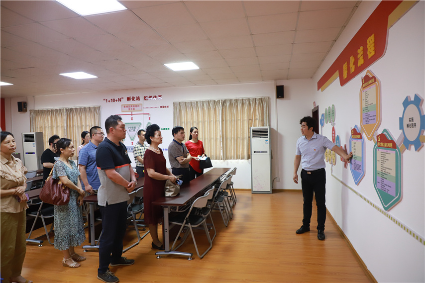 ▲廣西祥興實業(yè)集團黨委第一書記廖小芬一行蒞臨孵化站參觀調(diào)研