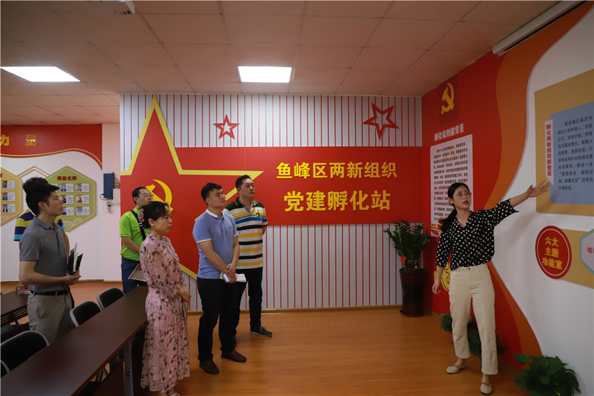 ▲城中區(qū)委組織部副部長(zhǎng)、兩新黨工委書(shū)記周芳睿一行蒞臨孵化站調(diào)研指導(dǎo)