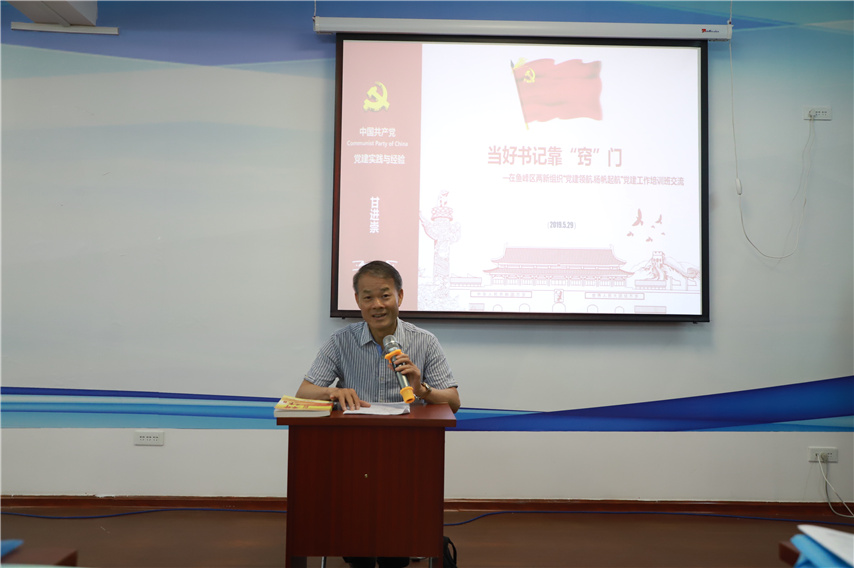 廣西方鑫黨委黨建顧問、供電局原黨委書記甘進崇作為孵化站的兩新名師,與學員們分享黨建工作的經(jīng)驗做法。