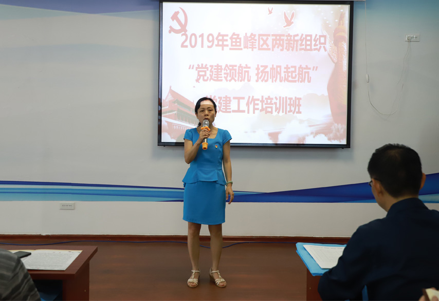 ▲魚峰區(qū)兩新組織黨工委副書記莫翔芬作培訓