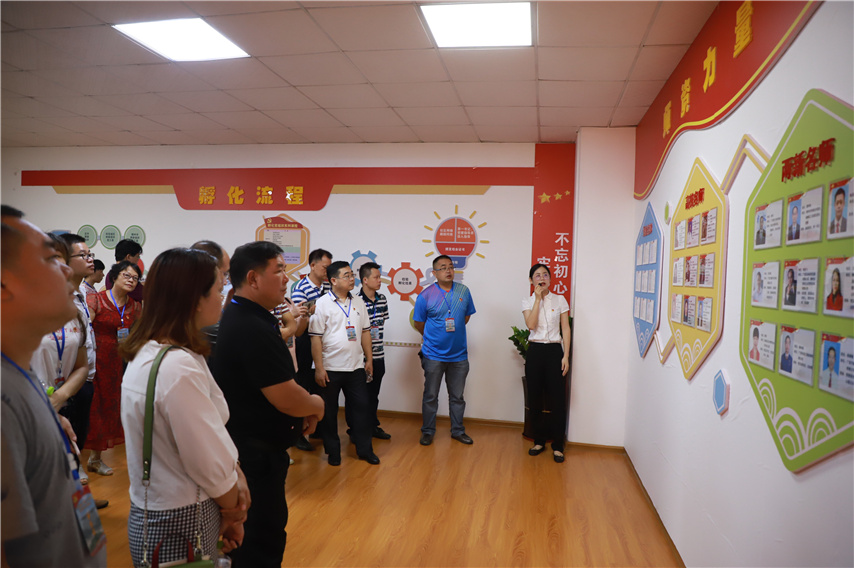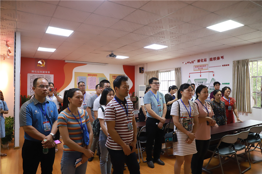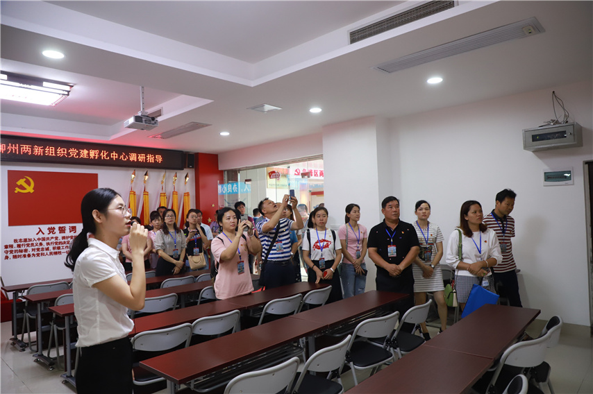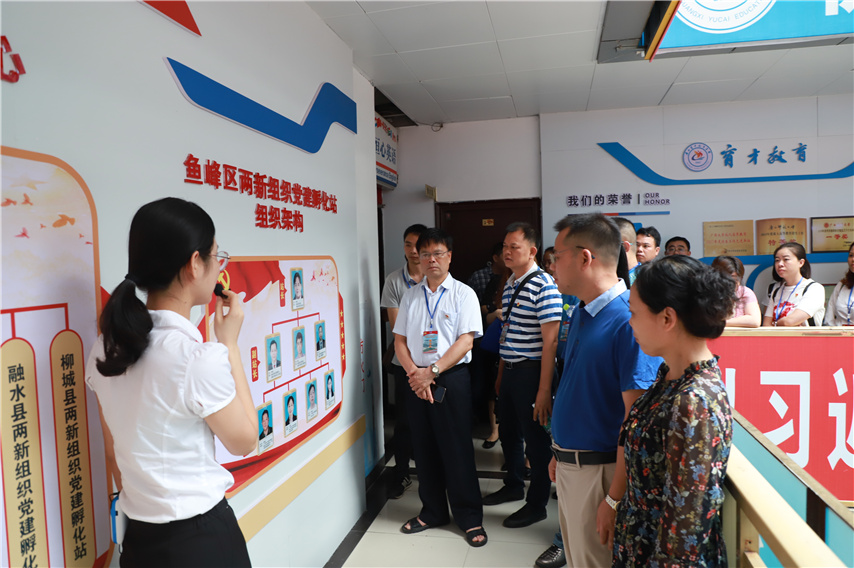 6月12日上午,由鹿寨縣委組織部?jī)尚曼h工委組織的43名兩新組織黨務(wù)工作者的考察交流團(tuán),在柳州市紅色學(xué)院培訓(xùn)期間,在廣西祥興實(shí)業(yè)集團(tuán)黨委第一書(shū)記廖小芬的帶領(lǐng)下蒞臨柳州兩新組織黨建孵化中心暨魚(yú)峰區(qū)兩新組織黨建孵化站考察交流,魚(yú)峰區(qū)兩新黨工委副書(shū)記莫翔芬、魚(yú)峰區(qū)兩新組織黨建孵化站副站長(zhǎng)、育才集團(tuán)聯(lián)合黨委書(shū)記蔣華陪同考察。