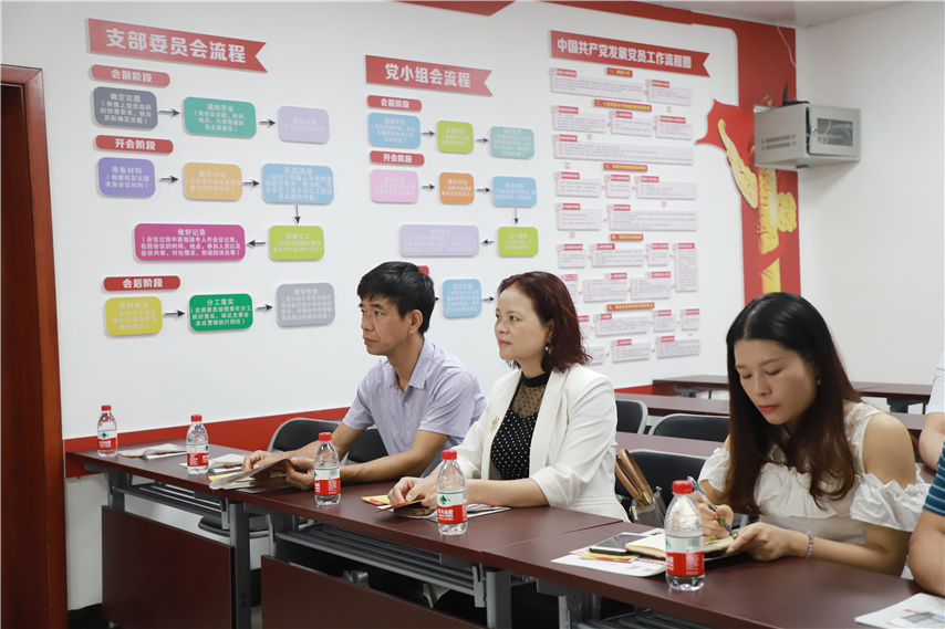蔣華書記向調(diào)研組一行介紹了育才企業(yè)的情況,通過黨建引領(lǐng)帶動企業(yè)發(fā)展,并表示積極配合柳州兩新組織黨建孵化中心、魚峰區(qū)兩新組織黨建孵化站開展黨建引領(lǐng)高質(zhì)量發(fā)展的人才培養(yǎng)新模式,為柳州及廣西培養(yǎng)更多扎根基層、留在基層、服務(wù)基層的高素質(zhì)人才。