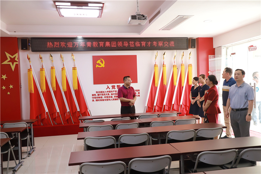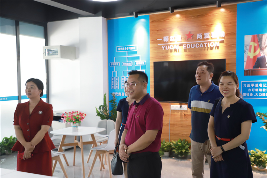 ▲黃河董事長(左一)參觀育才辦學(xué)環(huán)境