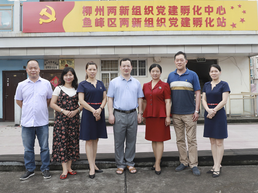 ▲黃河董事長(右二)參觀黨建孵化站建設(shè)