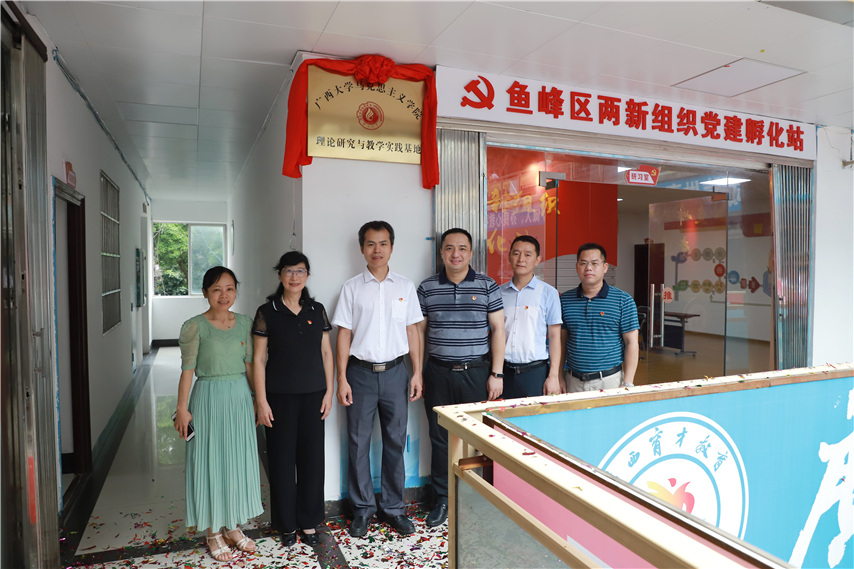 7月12日,廣西大學(xué)馬克思主義學(xué)院理論研究與教學(xué)實(shí)踐基地揭牌儀式在柳州兩新組織黨建孵化中心和魚峰區(qū)兩新組織黨建孵化站隆重舉行。廣西大學(xué)馬克思主義學(xué)院黨委書記周瑞超、副處級組織員冷相宜、柳州市委組織部組織四科科長池福波、魚峰區(qū)委組織部副部長于俊發(fā)、魚峰區(qū)兩新組織黨工委副書記莫翔芬、廣西育才教育集團(tuán)聯(lián)合黨委書記蔣華出席參加了揭牌儀式。