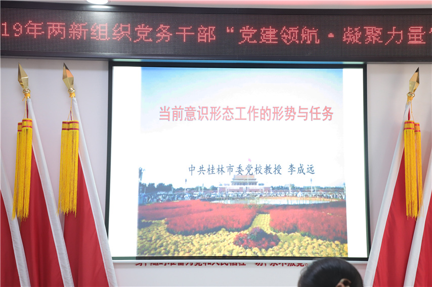 培訓(xùn)邀請了中共桂林市委黨校教授李成遠(yuǎn)作《當(dāng)前意識形態(tài)工作的形勢與任務(wù)》專題講授,李教授為大家分析了當(dāng)前在意識形態(tài)方面存在的機遇與挑戰(zhàn),闡述了中國意識形態(tài)安全所面臨的主要問題,提出了新形勢下維護(hù)我國意識形態(tài)安全的基本途徑。