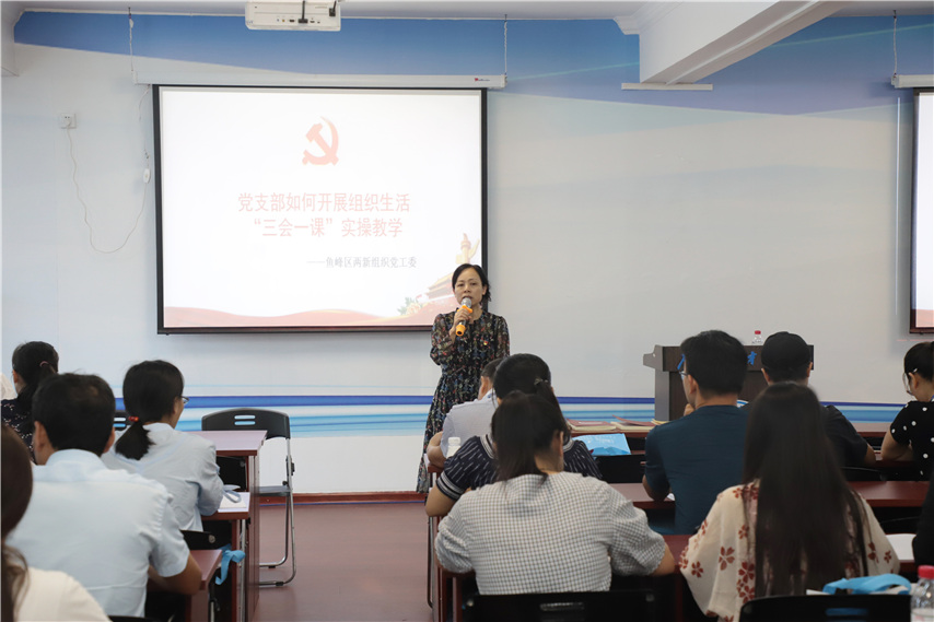 魚峰區(qū)兩新組織黨工委副書記莫翔芬作《黨支部如何開展組織生活》培訓(xùn)及“三會一課”實操教學(xué)。