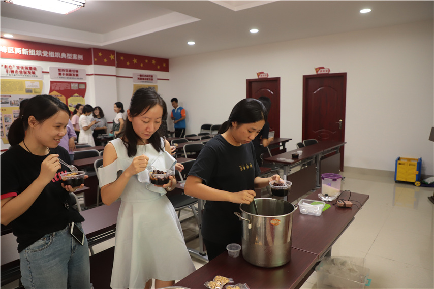 8月22日,為了提高轄區(qū)青年的就業(yè)創(chuàng)業(yè)技能,幫助社區(qū)青年增強(qiáng)創(chuàng)業(yè)意識(shí)、創(chuàng)業(yè)本領(lǐng),拓寬創(chuàng)業(yè)就業(yè)渠道,為增加轄區(qū)居民的就業(yè)率盡一份綿力,育才集團(tuán)聯(lián)合黨委聯(lián)合東環(huán)社區(qū)在孵化站培訓(xùn)室開展創(chuàng)業(yè)創(chuàng)新培訓(xùn)主題黨日活動(dòng),活動(dòng)的主題是教授仙草芋圓的制作,活動(dòng)聘請(qǐng)了趣創(chuàng)想創(chuàng)客空間的培訓(xùn)老師進(jìn)行現(xiàn)場(chǎng)指導(dǎo)制作過程。
