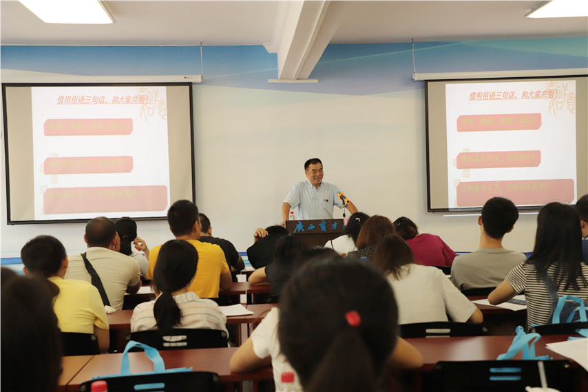 桂林市委黨校李成遠教授為學員講授黨史課程,帶領全體學員在思想上追溯中國共產(chǎn)黨誕生的歷史背景和發(fā)展歷程,并從三方面對中國共產(chǎn)黨的初心與使命做了一個全面的分析,引導學員不忘初心,積極爭做一個充滿正能量的黨員。