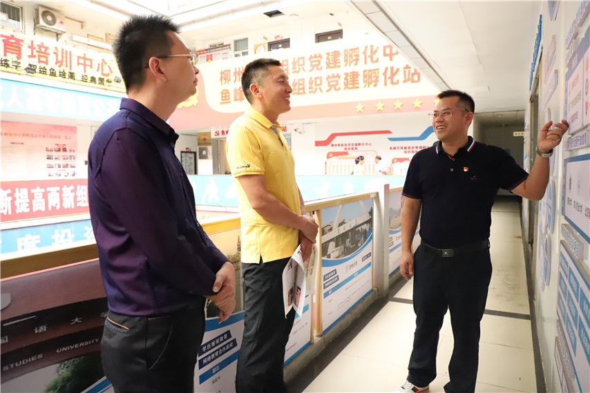 10月22日上午,南寧市良慶區(qū)委組織部副部長(zhǎng)郭偉濤,廣西良慶經(jīng)濟(jì)開(kāi)發(fā)區(qū)管理委員會(huì)副局長(zhǎng)、機(jī)關(guān)黨支部書(shū)記翟持高,良慶區(qū)市場(chǎng)監(jiān)督管理局副局長(zhǎng)、兩新黨工委副書(shū)記(兼)阮俊強(qiáng)以及良慶區(qū)50余名兩新組織黨務(wù)工作者到柳州兩新組織黨建孵化中心和魚(yú)峰區(qū)兩新組織黨建孵化站考察交流,孵化站副站長(zhǎng)、集團(tuán)聯(lián)合黨委書(shū)記蔣華,孵化站副站長(zhǎng)、集團(tuán)聯(lián)合黨委委員趙彬陪同考察。