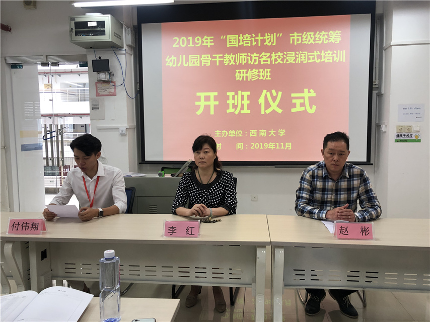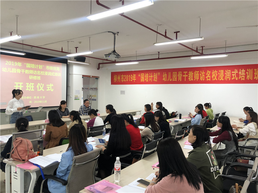 11月2日???,?由西南大學(xué)網(wǎng)絡(luò)與繼續(xù)教育學(xué)院主辦、柳州市育才職業(yè)培訓(xùn)學(xué)校承辦,為期8天的2019???年???“???國???????培???計(jì)???劃???”???市???????級???統(tǒng)???????籌幼兒園骨干教師訪名校浸潤式培訓(xùn)研修在?????柳州順利開?????????班???,????柳州市教師培訓(xùn)與學(xué)生素質(zhì)教育中心??學(xué)前項(xiàng)目負(fù)責(zé)人李紅老師、集團(tuán)聯(lián)合黨委委員、培訓(xùn)學(xué)院副院長趙彬以及來自柳州各城區(qū)的30余名?????幼??兒??園??老?????????師?????參?????????加?????了開班儀式,儀式由培訓(xùn)學(xué)院付偉翔老師主持。