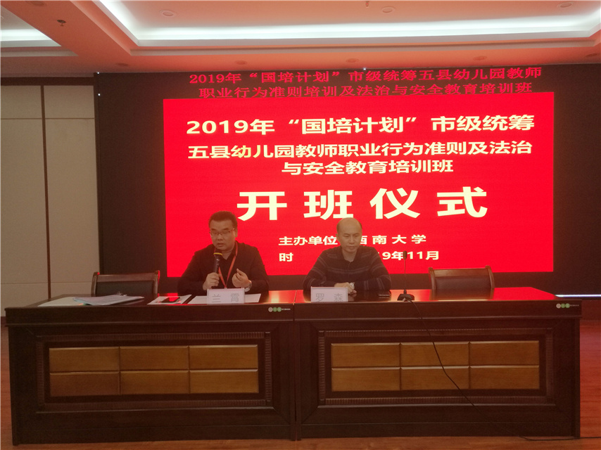 11月2日???,?為期2天的2019?????年???“?????國?????????培?????計(jì)?????劃???”?????市?????????級?????統(tǒng)?????????籌????五?縣??幼??兒??園??教??師?職?業(yè)?行?為?準(zhǔn)?則?培?訓(xùn)?及?法?治?與?安?全?教?育?培??訓(xùn)??在?????融水順利開?????????班???,????柳州市教師培訓(xùn)與學(xué)生素質(zhì)教育中心??書記羅森出席開班儀式并作講話,來自柳江區(qū)、融水縣的400余名?????幼??兒??園??教師?????參?????????加?????了開班儀式,儀式由培訓(xùn)學(xué)院主任蘭霄主持。