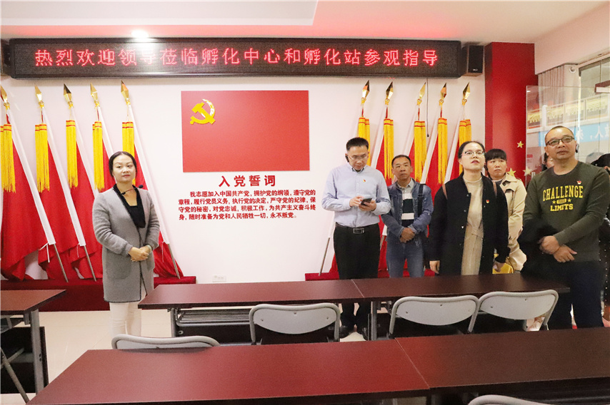 11月13日上午,由桂林荔浦市兩新組織黨工委副書記韋虹羽帶隊,來自荔浦市38名兩新組織書記、黨務(wù)工作者到柳州市兩新組織黨建孵?化中心和魚峰區(qū)兩新組織黨建孵化站考察交?流,集團(tuán)聯(lián)合黨委黨辦主任何桂川陪同考察。