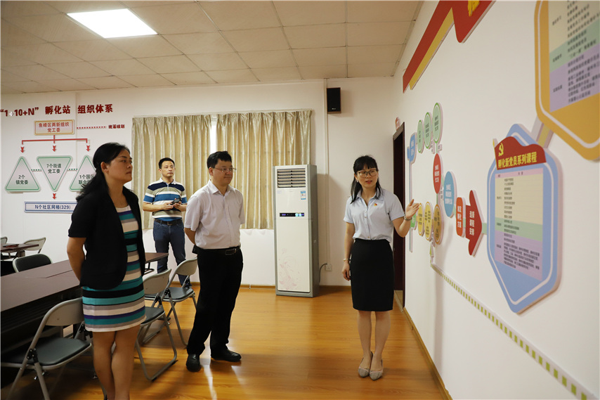 ▲市委組織部副部長(zhǎng)宋軍(右二)、魚峰區(qū)委常委、組織部部長(zhǎng)彭婧(左一)聽取匯報(bào)
