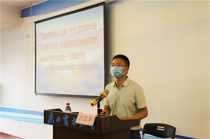 本次授課邀請了柳州職業(yè)技術學院馬克思主義學院副教授古志華,古教授以《建設具有強大凝聚力和引領力的社會主義意識形態(tài)》為學員授課,圍繞意識形態(tài)工作的概念和主要內容、當前意識形態(tài)工作面臨的形勢和增強對意識形態(tài)工作的責任使命感三個維度,結合典型案例,全面解讀了新時代意識形態(tài)工作的內容。