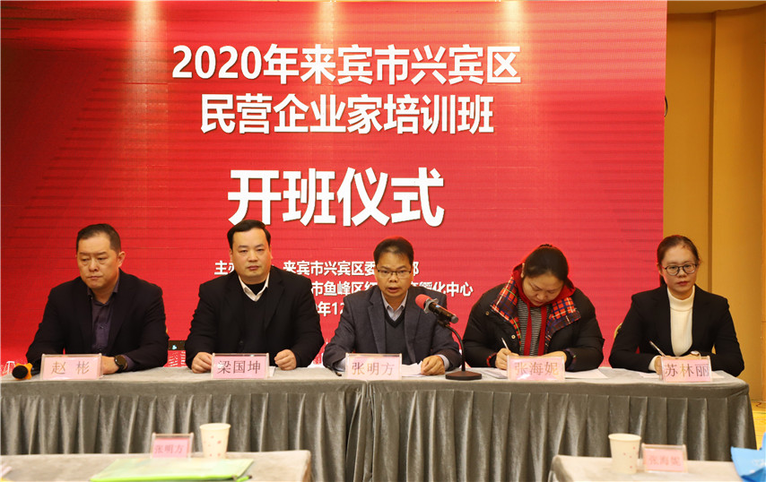 12月15日,由集團(tuán)黨建干部培訓(xùn)中心承辦的2020年來賓市興賓區(qū)委統(tǒng)戰(zhàn)部民營企業(yè)家培訓(xùn)班在柳州順利開班。來賓市興賓區(qū)委統(tǒng)戰(zhàn)部副部長張明方,集團(tuán)總校校長梁國坤,集團(tuán)黨委委員、培訓(xùn)學(xué)院院長趙彬出席開班儀式,本次培訓(xùn)班為期三天,來自來賓市興賓區(qū)民營企業(yè)家50余人參加本次培訓(xùn),開班儀式由趙彬院長主持。