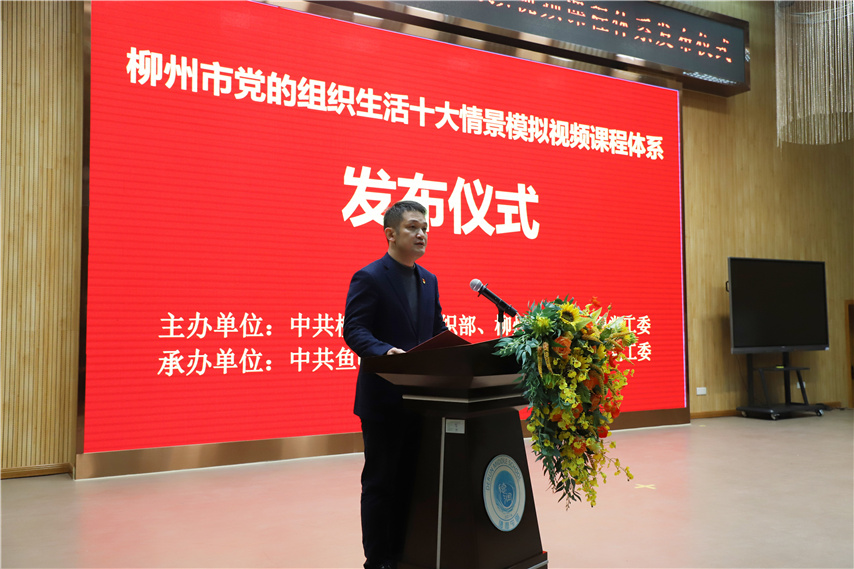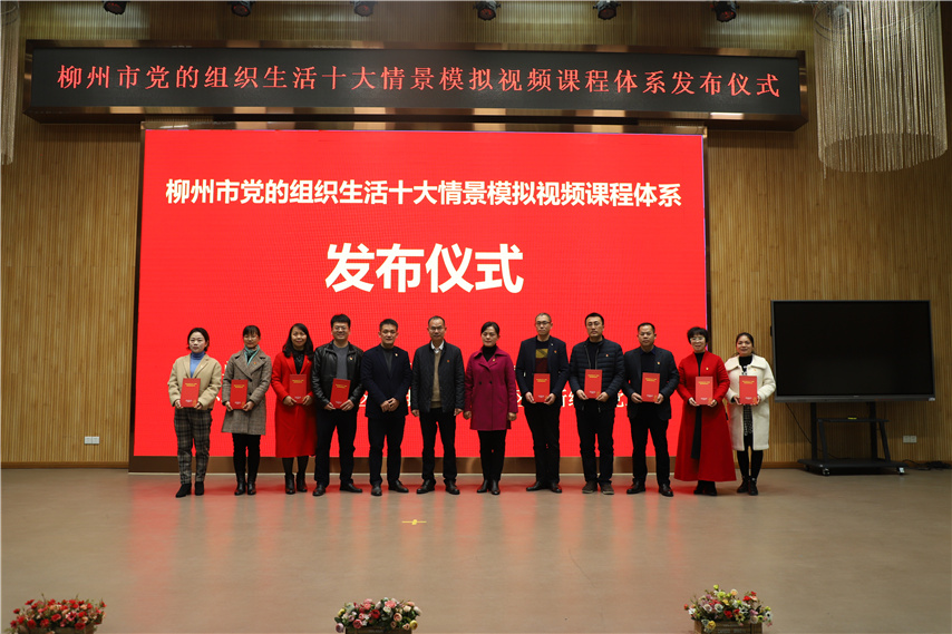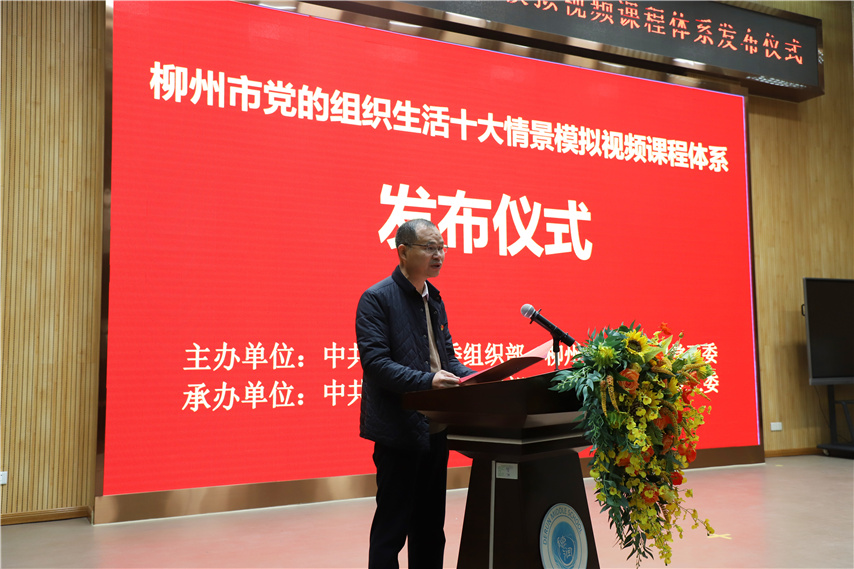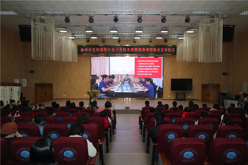 12月28日上午,由中共柳州市委組織部、柳州市兩新組織黨工委主辦,中共魚(yú)峰區(qū)委組織部、魚(yú)峰區(qū)兩新組織黨工委承辦的柳州市黨的組織生活十大情景模擬視頻課程體系發(fā)布儀式,在魚(yú)峰區(qū)德潤(rùn)中學(xué)隆重舉行,柳州市委組織部副部長(zhǎng)、市兩新組織黨工委書(shū)記劉慶寧,市委組織部組織四科副科長(zhǎng)胡章勇,魚(yú)峰區(qū)委副書(shū)記王漢強(qiáng)等領(lǐng)導(dǎo)出席發(fā)布儀式,各城區(qū)兩新組織黨工委負(fù)責(zé)人,魚(yú)峰區(qū)各黨(工)委領(lǐng)導(dǎo),各行業(yè)黨員代表近百人參加了發(fā)布儀式,集團(tuán)黨委書(shū)記、董事長(zhǎng)蔣華及參與視頻拍攝的集團(tuán)黨員代表參加了發(fā)布儀式。發(fā)布儀式由魚(yú)峰區(qū)委常委、組織部部長(zhǎng)彭靖主持。