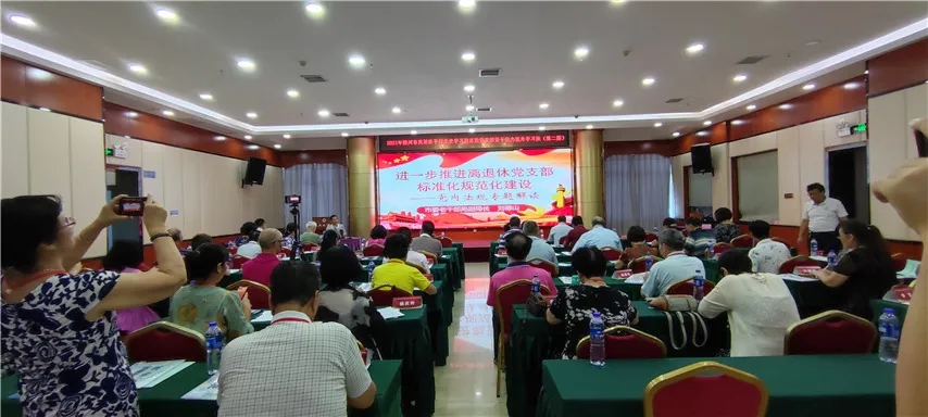 ▲柳州市委老干部局副局長、離退休干部工作委員會副書記劉德山作《進一步推進離退休黨支部標準化規(guī)范化建設——黨內(nèi)法規(guī)專題解讀》授課。