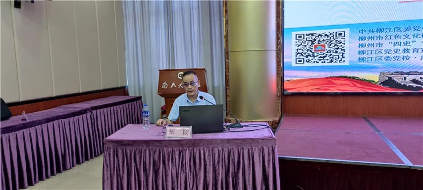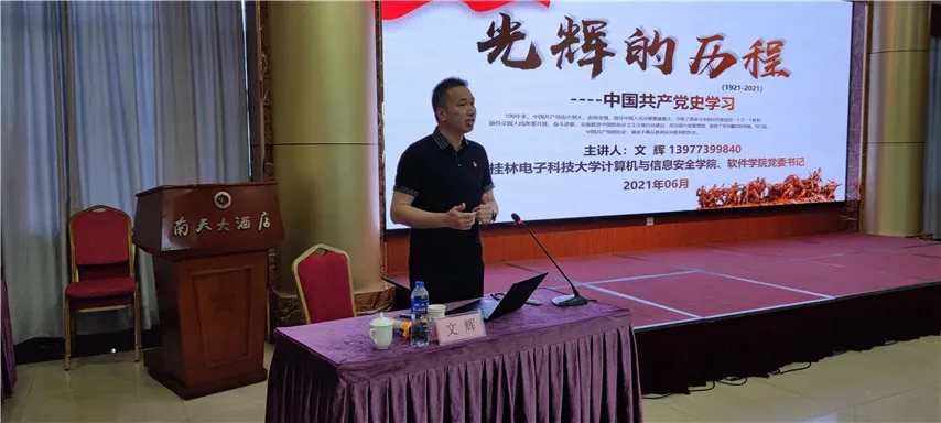 ▲桂林電子科技大學文輝副教授作黨史專題講座。