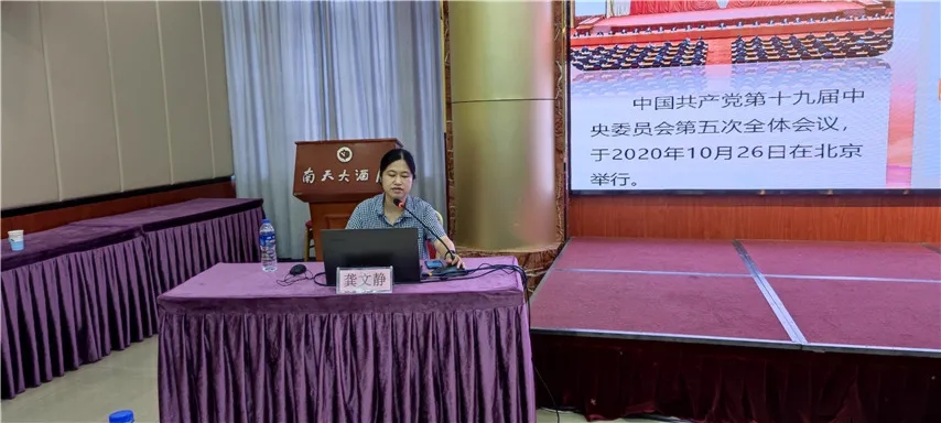 ▲柳州職業(yè)技術學院龔文靜副教授作《十九屆五中全會解讀》授課