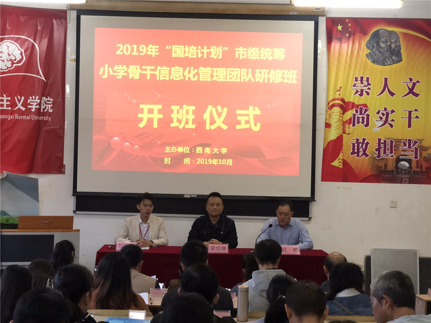 10月26日???,由西南大學(xué)網(wǎng)絡(luò)與繼續(xù)教育學(xué)院主辦、柳州市育才職業(yè)培訓(xùn)學(xué)校承辦,為期10天的2019???年???“???國???????培???計???劃???”???市???????級???統(tǒng)???????籌??柳城縣、鹿寨縣小學(xué)骨干信息化管理團(tuán)隊培訓(xùn)班在???桂林順利???開???????班???,???柳州市教師培訓(xùn)與學(xué)生素質(zhì)教育中心梁佳繼老師,集團(tuán)聯(lián)合黨委委員、培訓(xùn)學(xué)院副院長趙彬以及來?自?柳城、鹿寨的60余名小學(xué)教師???參???????加???了?培?訓(xùn)?。