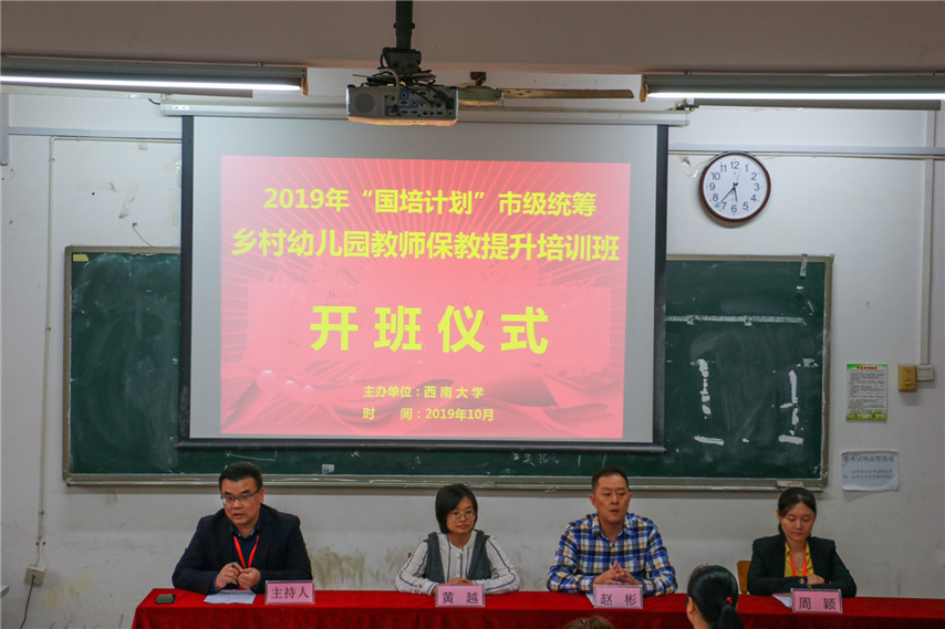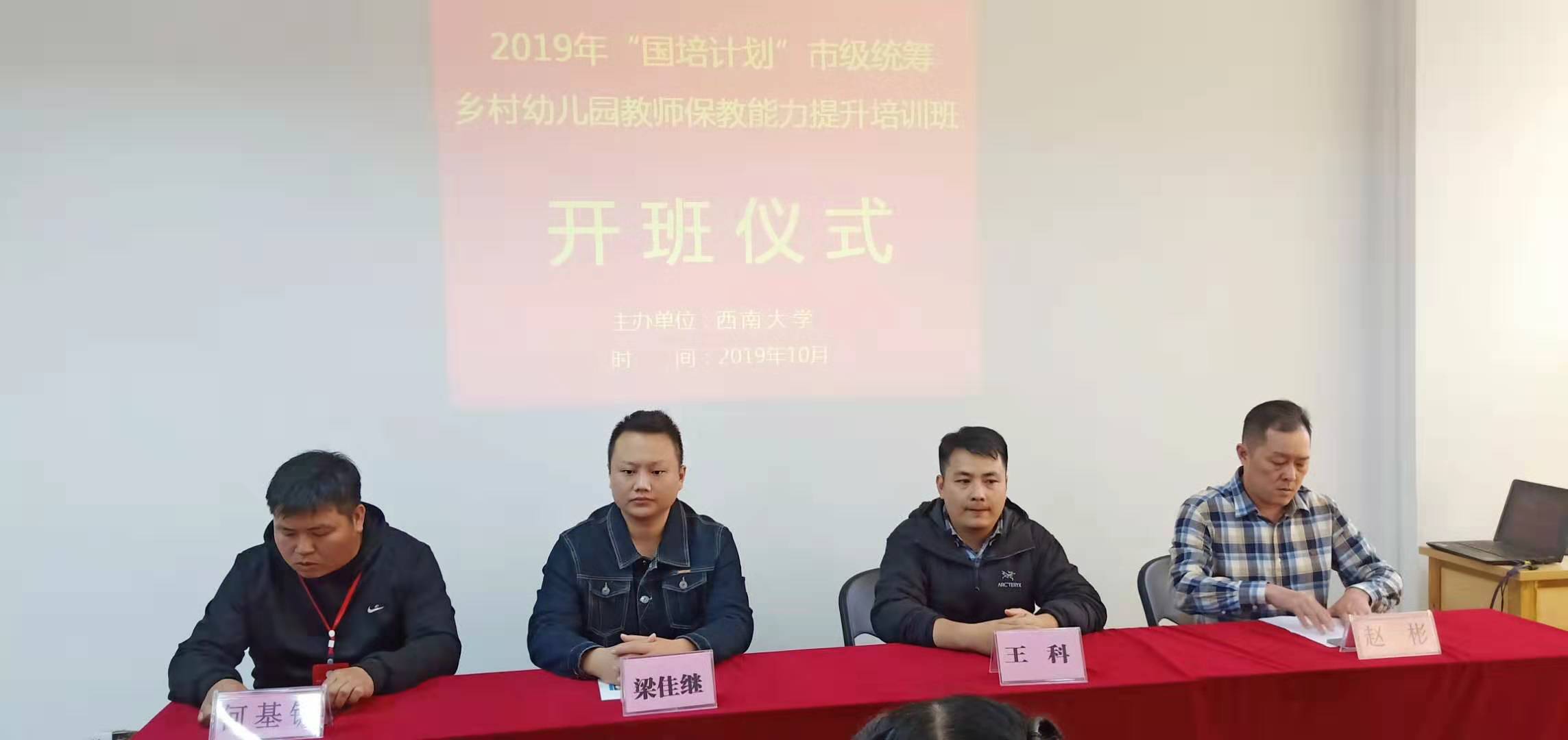 10??月28日???,?由西南大學(xué)網(wǎng)絡(luò)與繼續(xù)教育學(xué)院主辦、柳州市育才職業(yè)培訓(xùn)學(xué)校承辦,為期2天的2019?????年???“?????國?????????培?????計?????劃???”?????市?????????級?????統(tǒng)?????????籌????鄉(xiāng)村幼兒園教師保教能力提升培訓(xùn)班在?????桂林順利?????開?????????班???,????????柳州市教師培訓(xùn)與學(xué)生素質(zhì)教育中心梁佳繼老師,集團(tuán)聯(lián)合黨委委員、西南大學(xué)網(wǎng)絡(luò)與繼續(xù)教育學(xué)院教師培訓(xùn)中心王科老師???,集團(tuán)聯(lián)合黨委委員、培訓(xùn)學(xué)院副院長趙彬以及來自柳州市、縣各機(jī)關(guān)幼兒園精心選拔的30名拔尖青年幼兒教育專業(yè)的優(yōu)秀教師參加了開班儀式,儀式由培訓(xùn)學(xué)院何基鋮老師主持。