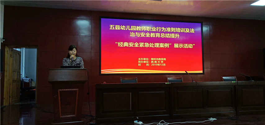 近日,柳州五縣幼兒園教師職業(yè)行為準(zhǔn)則培訓(xùn)及法治與安全教育總結(jié)提升會在融水縣順利舉行,柳??州??市??師??培??中??心??李紅老師,集團(tuán)聯(lián)合黨委委員、培訓(xùn)學(xué)院副院長趙彬以及?來????自柳州五縣180名余幼兒園老師參加了會議。至此,由柳州市育才職業(yè)培訓(xùn)學(xué)校承辦的2019年柳州市“國培計劃”市級統(tǒng)籌教師培訓(xùn)圓滿落幕。