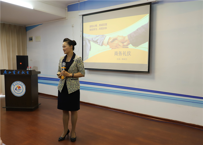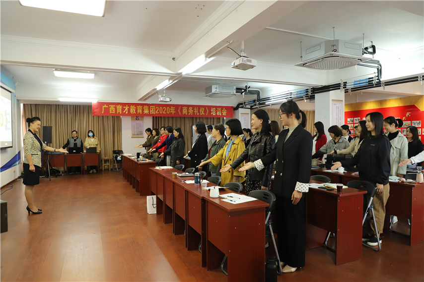 10月17日,集團(tuán)2020年《商務(wù)禮儀》培訓(xùn)在柳州本部順利舉辦,由國家級(jí)高級(jí)禮儀培訓(xùn)師、禮賓師,柳州市委黨校、柳州市行政學(xué)院客座教授譚成芝教授進(jìn)行授課,集團(tuán)黨委委員、副總經(jīng)理、副校長王麗以及柳州本部的50余名教職工參加了培訓(xùn)。