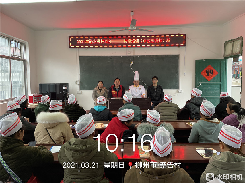 3月17日,我培訓(xùn)學(xué)校2021年001期職業(yè)技能(中式烹調(diào)師)培訓(xùn)班在融水縣桿洞鄉(xiāng)順利開班,來自村里的40余名貧困戶參加了此次培訓(xùn)。