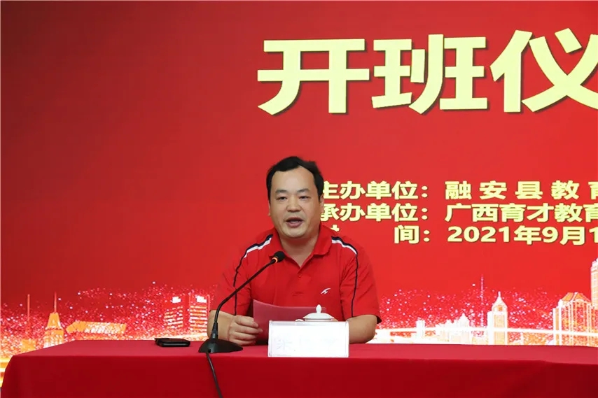 ▲融安縣教育工委副書記楊芝佩做開班動員講話