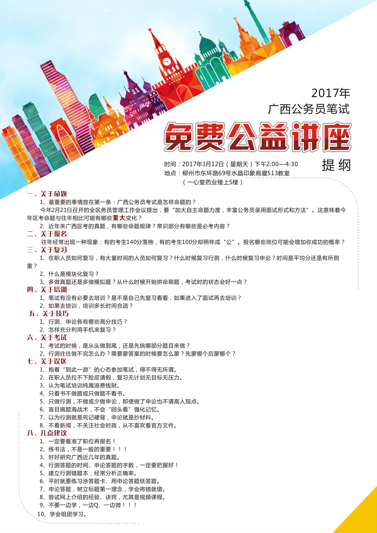 2017年廣西公務(wù)員筆試免費(fèi)公益講座(第二期)
