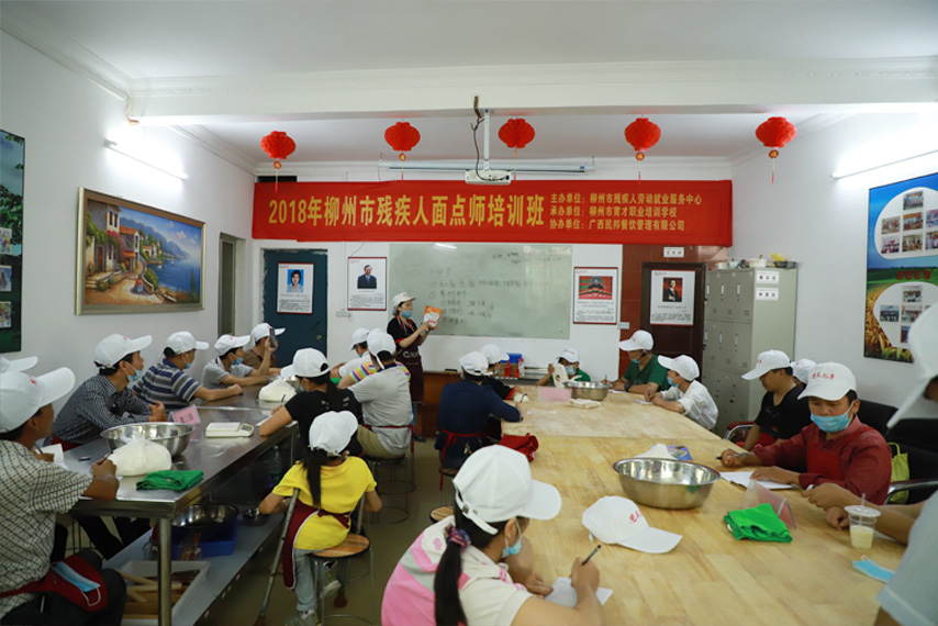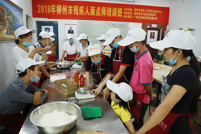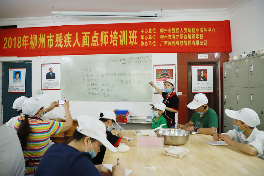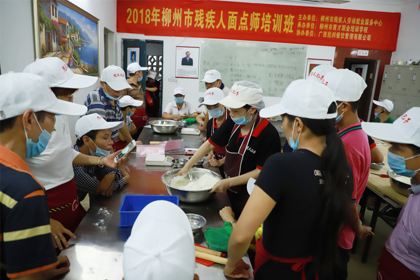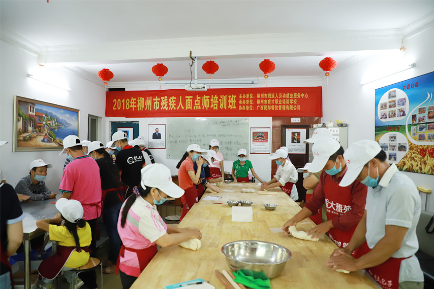 6月19日,為期5天的2018年柳州市殘疾人面點師培訓(xùn)班在育才柳州總部開班,培訓(xùn)班由柳州市殘疾人勞動就業(yè)服務(wù)中心主辦、柳州市育才職業(yè)培訓(xùn)學(xué)校承辦、廣西民邦餐飲管理有限公司協(xié)辦,來自柳州各城區(qū)的30余名殘疾人參加了培訓(xùn)。
