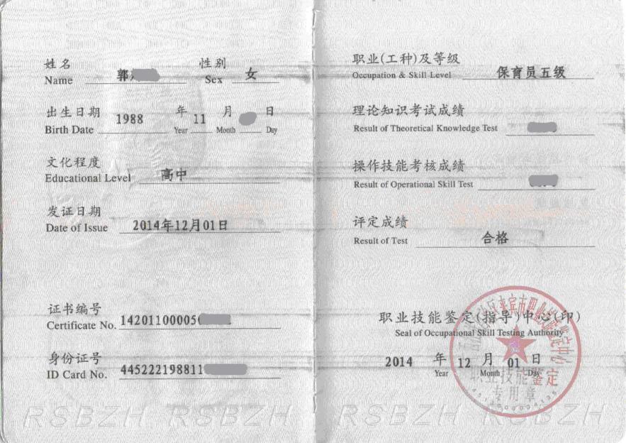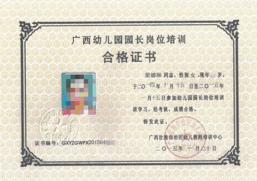 | 園長資格證書樣式 | 保育員證書樣式 |