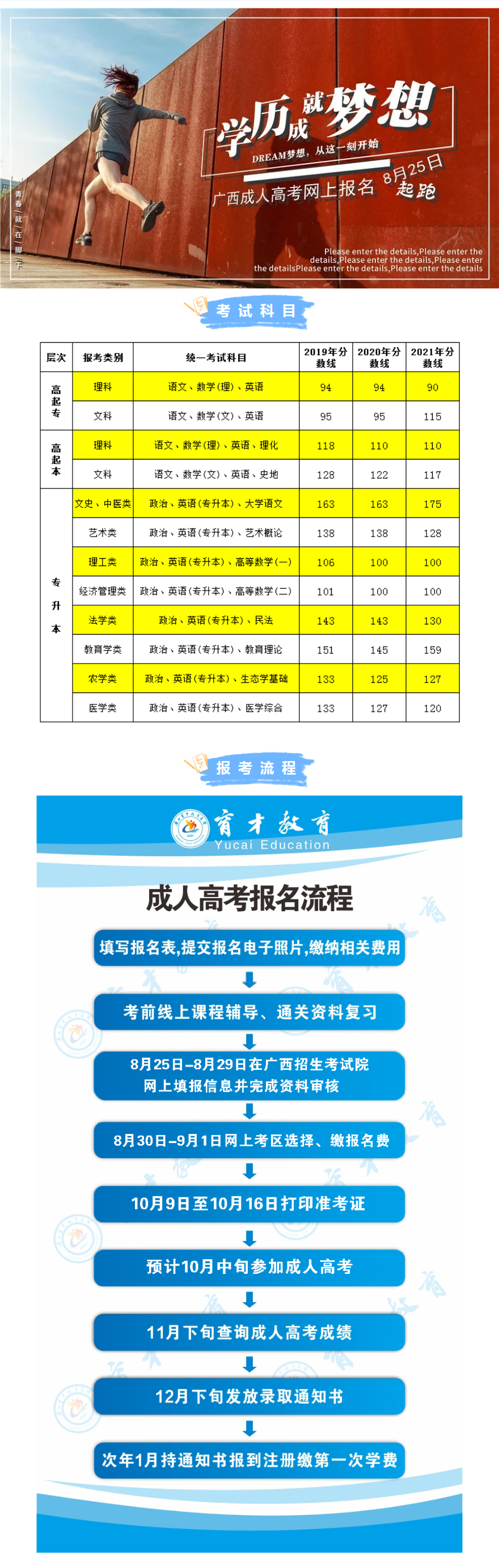 10、2021年廣西成人高考錄取最低控制分?jǐn)?shù)線