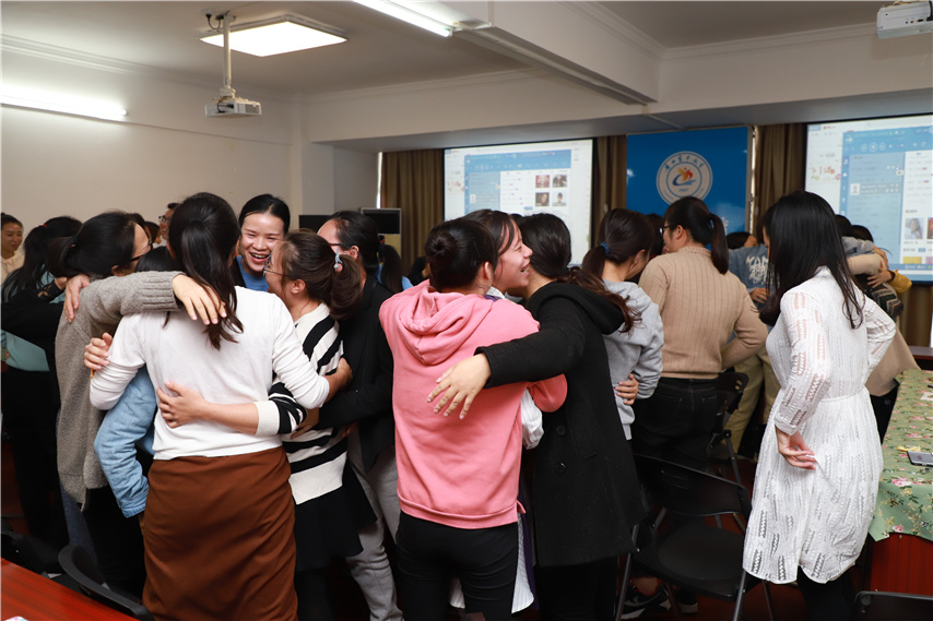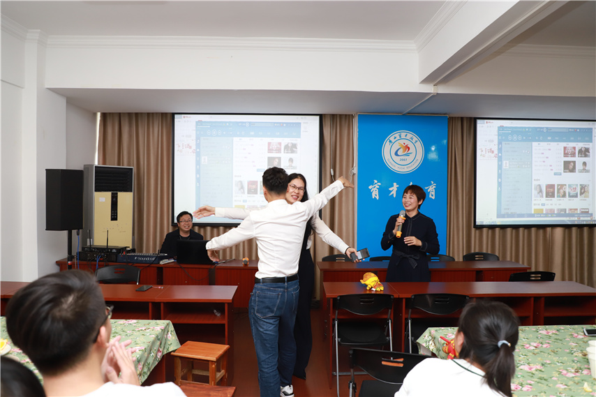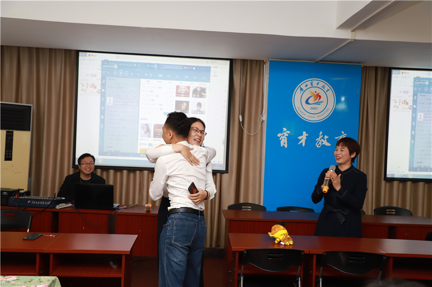 王志副校長和李彩梅副校長演示擁抱禮儀
