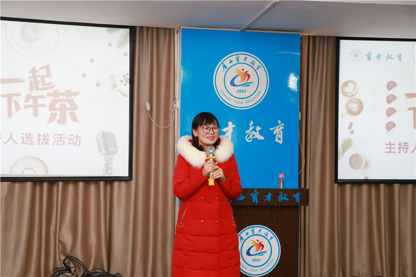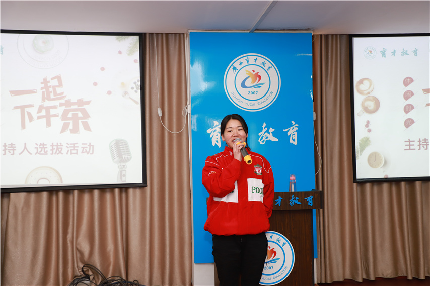 大家一邊享受著集團(tuán)工會(huì)特意準(zhǔn)備的2019年第一次下午茶慢時(shí)光,一邊現(xiàn)場(chǎng)觀摩選手的風(fēng)采并為之加油鼓勁。本次主持人選拔活動(dòng),共有5名選手報(bào)名參加,他們都是有主持愛好和夢(mèng)想,同時(shí)具備一定的主持能力或一定潛力的育才教職員工,活動(dòng)規(guī)定選手要在儀表儀態(tài)、形象氣質(zhì)、普通話標(biāo)準(zhǔn)、聲音適宜 、吐字準(zhǔn)確、表達(dá)流暢、臨場(chǎng)發(fā)揮、應(yīng)變能力、富有創(chuàng)意和時(shí)間控制等10個(gè)方面,展示自己的主持綜合能力,而集團(tuán)所有教職員工則是活動(dòng)的評(píng)委,以此作為評(píng)分的標(biāo)準(zhǔn),評(píng)選出自己喜歡的主持人。