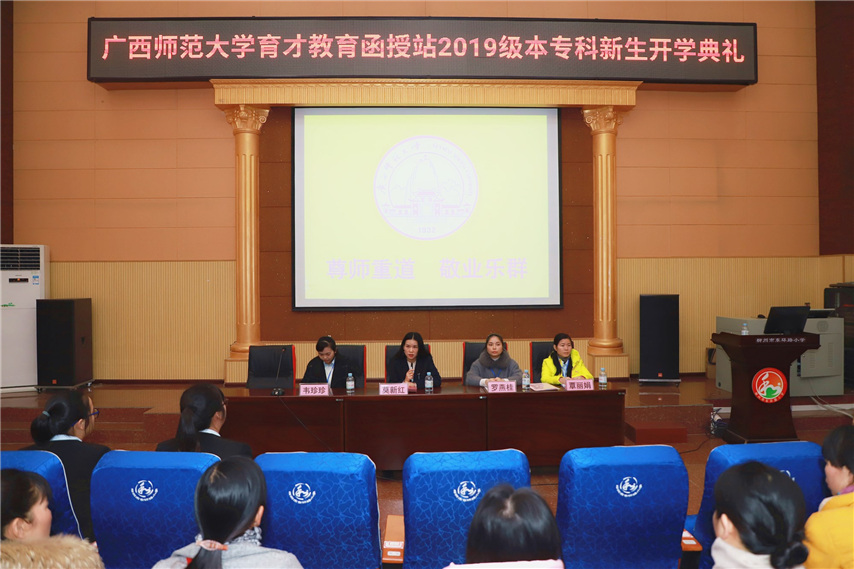 1月12日上午,廣西師范大學(xué)柳州育才函授站成高2019級(jí)新生開(kāi)學(xué)典禮在柳州本部隆重舉行。廣西師范大學(xué)繼續(xù)教育學(xué)院院長(zhǎng)劉玉紅教授、副院長(zhǎng)蔣冬清、學(xué)歷部主任蘇華、副主任王杏改出席典禮并作重要講話。廣西育才教育黨總支書(shū)記、函授站站長(zhǎng)蔣華、育才教育副校長(zhǎng)李彩梅以及來(lái)自柳州各行業(yè)的200余名新生代表參加了開(kāi)學(xué)典禮。