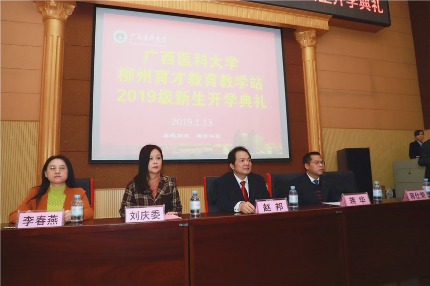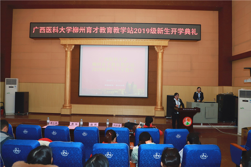 1月13日上午,廣西醫(yī)科大學(xué)育才教育教學(xué)站2019級成高新生開學(xué)典禮在柳州本部隆重舉行。廣西醫(yī)科大學(xué)繼續(xù)教育學(xué)院院長、主任醫(yī)師趙邦教授、副院長劉慶委、李春燕、辦公室主任黃明、教務(wù)科科長馮政毅、廣西育才教育黨總支書記、教學(xué)站站長蔣華、副站長蔣仕榮以及來自柳州醫(yī)學(xué)行業(yè)的200多名新生代表參加了開學(xué)典禮,會議由副站長蔣仕榮主持。