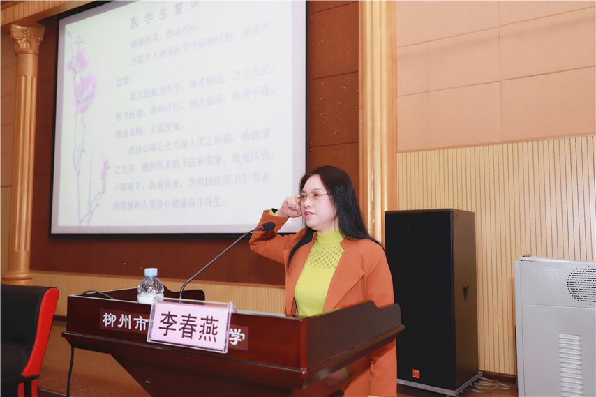 在李春燕副院長的帶領(lǐng)下,全體與會人員莊嚴(yán)地宣讀《中國醫(yī)學(xué)生誓言》,承諾在從醫(yī)的道路上牢記醫(yī)德,永懷對醫(yī)學(xué)事業(yè)的決心和懸壺濟(jì)世、救死扶傷的責(zé)任。
