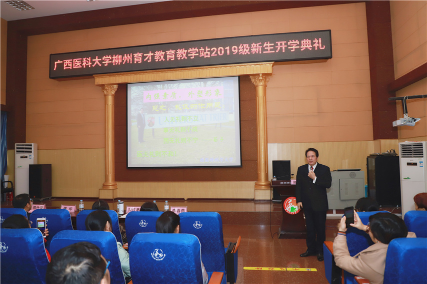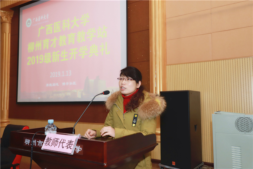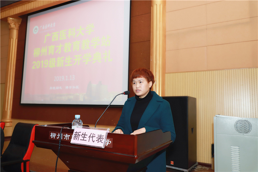 劉慶委副院長代表學(xué)校向全體成教新生表示誠摯的祝賀,對大力支持廣西醫(yī)科大學(xué)成教工作的育才教育表示衷心的感謝。她著重介紹了學(xué)校的發(fā)展歷史、師資隊(duì)伍建設(shè)等情況以及近年來在成人高等繼續(xù)教育方面所取得的成績,她說,幸福是奮斗出來的,從今天起,各位新學(xué)員們將掀開人生嶄新的一頁,希望同學(xué)們做好三個方面:一、要遵循和踐行“厚德勵志,博學(xué)弘醫(yī)”的校訓(xùn),嚴(yán)格要求自己,成為一名醫(yī)術(shù)精湛、醫(yī)德高尚的醫(yī)務(wù)工作者。二、要不忘初心,行穩(wěn)致遠(yuǎn),遵守教學(xué)規(guī)定,妥善處理好工作、學(xué)習(xí)和家庭的矛盾,踏踏實(shí)實(shí)學(xué)習(xí),實(shí)現(xiàn)人生規(guī)劃的彎道超越。三、要逐夢前行,壯美人生,要學(xué)會規(guī)劃,并為之努力下去,通過三年的努力,一定會有新的提高和收獲,實(shí)現(xiàn)新的夢想。