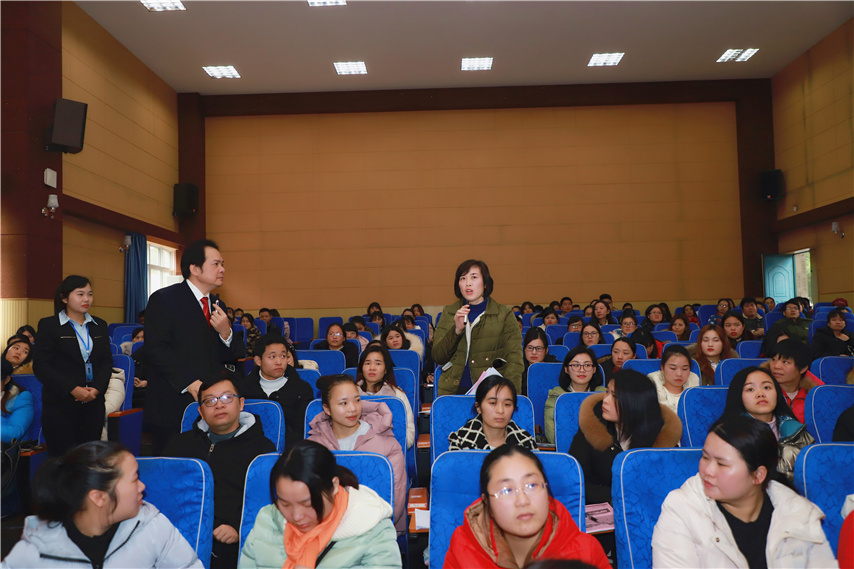 在開學(xué)典禮上 ,教學(xué)站特別為2019級新生舉辦了一場“文明禮儀暨醫(yī)務(wù)人員禮儀”培訓(xùn)講座,由廣西醫(yī)科大學(xué)繼續(xù)教育學(xué)院院長、國家高級禮儀培訓(xùn)師趙邦教授講解和示范文明禮儀課程,以此積極倡導(dǎo)文明禮儀規(guī)范,營造學(xué)禮儀、知禮儀、習(xí)禮儀、樹新風(fēng)的良好氛圍。培訓(xùn)過程中,趙邦教授從我國的傳統(tǒng)文明禮儀談起,結(jié)合西方禮儀和現(xiàn)代禮儀規(guī)范,以豐富的知識、輕松詼諧的風(fēng)格、理論聯(lián)系實(shí)際的方式,講解了各類文明禮儀知識內(nèi)容,尤其對于醫(yī)學(xué)人員禮儀進(jìn)行了著重講解。由于講座貼近工作和生活實(shí)際,實(shí)用性強(qiáng),氣氛十分活躍,培訓(xùn)現(xiàn)場還進(jìn)行了有獎禮儀搶答環(huán)節(jié),搶答成功的學(xué)員獲贈由趙邦教授主編并現(xiàn)場簽名的《醫(yī)護(hù)禮儀》一書。通過此次培訓(xùn),讓學(xué)員們掌握了禮儀知識、行為規(guī)范及待人接物的技巧和方法,對文明禮儀有了更深的了解。