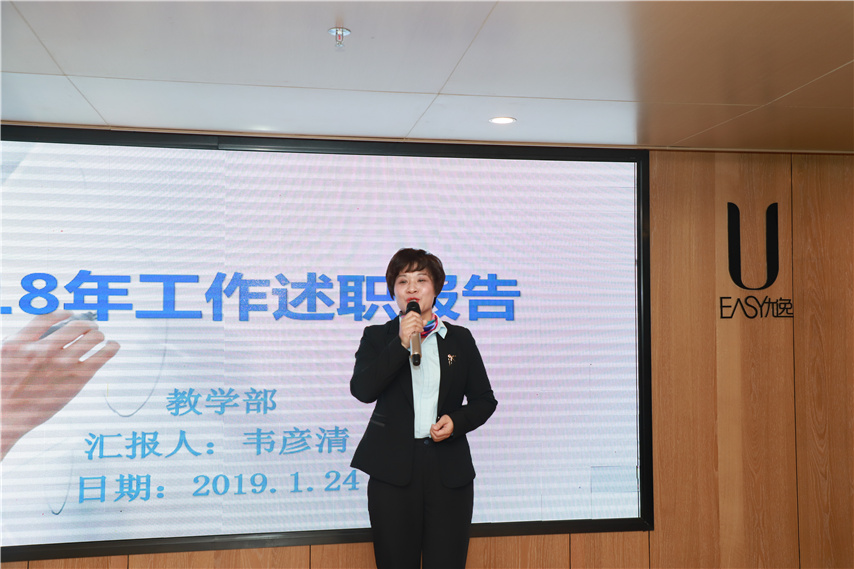 副總經(jīng)理、副校長(zhǎng)李彩梅作2018年教學(xué)工作總結(jié),對(duì)學(xué)籍管理、教學(xué)管理及教學(xué)綜合事務(wù)方面所取得的成績(jī)和存在的問(wèn)題進(jìn)行匯報(bào),并提出要根據(jù)公司發(fā)展情況合理制定各項(xiàng)教學(xué)工作培訓(xùn)方案、加強(qiáng)分校負(fù)責(zé)人對(duì)教學(xué)管理環(huán)節(jié)的了解并積極配合總部開(kāi)展教學(xué)常規(guī)工作。