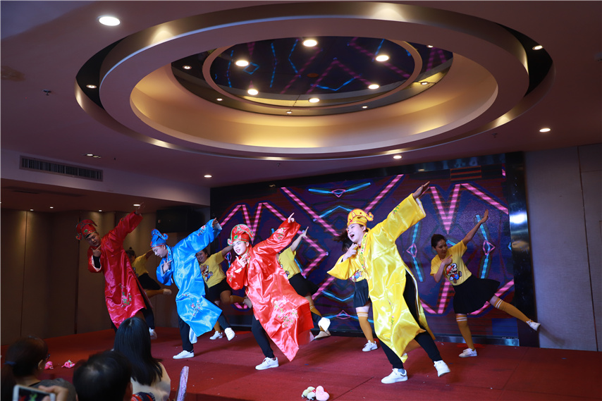 晚會(huì)在桂林分校表演的《禮儀之邦》激昂的擂鼓聲中拉開了序幕,整個(gè)晚會(huì)節(jié)目異彩紛呈,現(xiàn)場(chǎng)氣氛十分熱烈,炫酷的勁舞、深情激昂的詩歌朗誦、優(yōu)美的古典舞、詼諧的串燒舞蹈節(jié)目表演令人目不暇接。來自科技大項(xiàng)目辦的舞蹈《護(hù)花使者》,以韋志南老師成功反串和在C位的“風(fēng)騷”演繹,成為晚會(huì)上一道亮麗的風(fēng)景。來自教學(xué)中心的舞蹈《熱氣似火》,舞姿炫彩,情感釋放,就像我們育才團(tuán)隊(duì)服務(wù)每一位求學(xué)者的熱情。