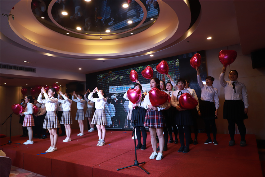 整臺(tái)晚會(huì)散發(fā)著鮮明的青春氣息和濃郁的企業(yè)文化,歌聲、歡笑聲、喝彩聲、掌聲把整個(gè)現(xiàn)場(chǎng)匯成一片歡樂海洋。壓軸節(jié)目是來自教學(xué)中心的合唱暨手語舞《和你一樣》,節(jié)目營(yíng)造出溫馨感人的氛圍,讓人沉浸其中,晚會(huì)就此落下帷幕。晚會(huì)結(jié)束后,全體演員和嘉賓代表進(jìn)行了合影留念。