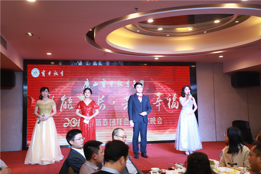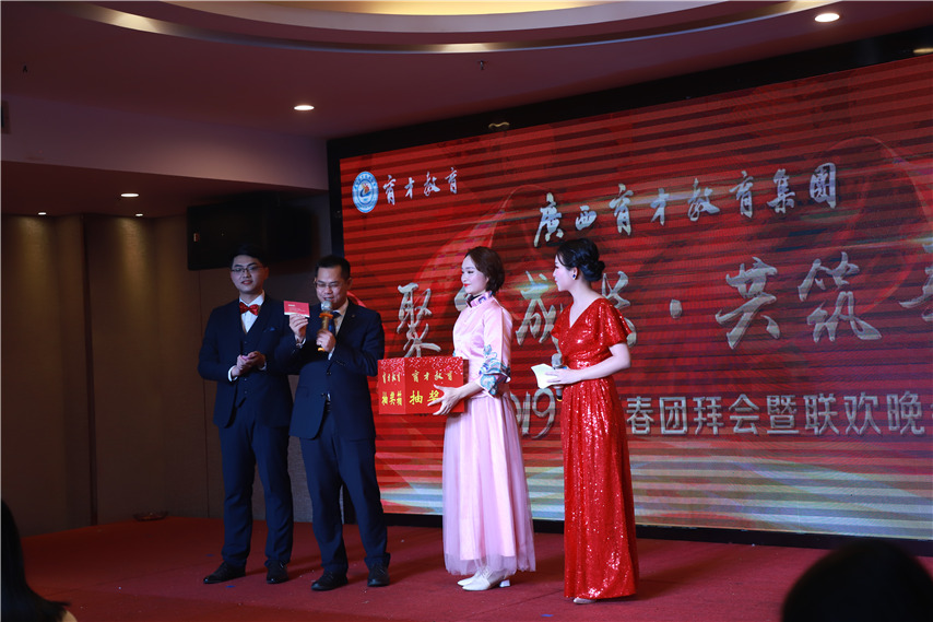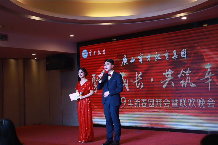 1月25日晚,廣西育才教育集團(tuán)2019年新春團(tuán)拜會(huì)暨聯(lián)歡晚會(huì)在柳州大唐嘉宴酒店桂中總店圓滿舉行。