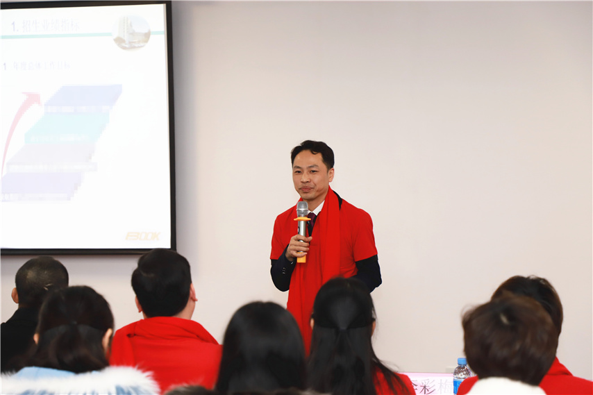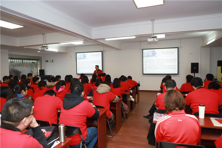 ▲會上,集團黨總支書記、董事長、總經(jīng)理、培訓(xùn)學(xué)院院長蔣華作了題為《狠抓落實,推動育才新發(fā)展新跨越 》的全年工作計劃報告,對育才2019年各項工作作了總體部署,主要提出了2019年的總體發(fā)展目標(biāo),對黨建、招生、教學(xué)、培訓(xùn)、財務(wù)、工會、企業(yè)文化、學(xué)工活動等版塊工作提出了新的要求。他說,2019年集團將繼續(xù)以“一顆紅心,兩翼驅(qū)動”為指導(dǎo)思想,以標(biāo)準(zhǔn)、效能、服務(wù)、發(fā)展為主要方向,堅持狠抓落實,深化改革,統(tǒng)一核心價值觀,以穩(wěn)定學(xué)歷教育辦學(xué)規(guī)模為前提,把工作重心轉(zhuǎn)移到非學(xué)歷教育培訓(xùn)市場,打通學(xué)歷和非學(xué)歷的通道,從而推動育才新發(fā)展、新跨越。